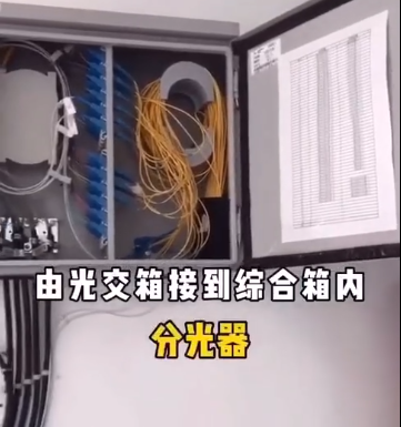家庭网络然后通过分光器接入光缆到达分纤箱。